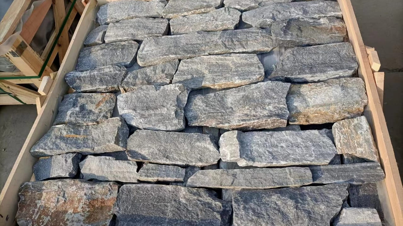 Bass Coast is a refined natural quartz walling stone inspired by the dramatic coastal cliffs and cool tones of Victoria’s southern shoreline. With layered shades of deep grey, soft silver and muted blue-grey highlights, this stone delivers a clean, contemporary appearance while maintaining natural depth and texture.