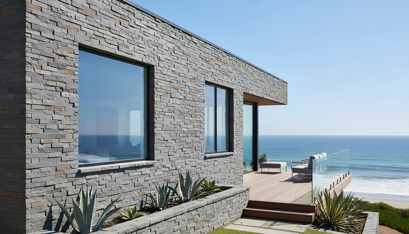 The stone is cut into angular, linear forms that stack neatly to create a structured yet organic wall finish. Its consistent colouring and crisp edges make Bass Coast particularly well suited to modern residential and commercial architecture, where a strong visual statement is required without overwhelming the design.